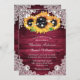 Invitación Burgundy Rústico Wood Lace Sunflower Boda