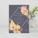 Esta invitación a la boda incluye flores de acuarela rústicas y calabazas en terracota, burdeos, naranja quemado, amarillo, rubor con pasto de pampas beige y marrón, y un marco de diamante dorado. Para una personalización más avanzada de este diseño, haga clic en el enlace "personalizar más adelante". También están disponibles los elementos coincidentes.
