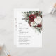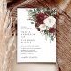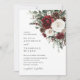 Matching items available including RSVP cards, details cards, envelopes, menus, place cards, table numbers, wedding signage, and save the date designs in the same burgundy winter floral collection.
