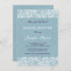 Invitación Burlap de lino azul y encaje floral blanco 2 Invit