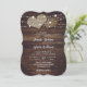 Invitación Burlap Hearts String enciende a Rustic Wood Boda