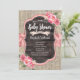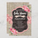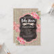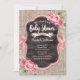 Invitación Burlap Wood Chica de Flores Rosa Baby Shower