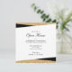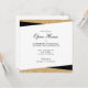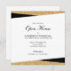 Esta invitación de la casa de negocios cuenta con un elegante diseño profesional acentuado con texto de escritura y purpurina de imitación de oro. Esta invitación en blanco y negro incluye texto personalizado para que añada la invitación a un evento de negocios.