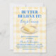 This trendy design features a charming butter illustration on a plate, a soft yellow gingham background, and a delicate bow detail for a sweet and stylish look. Perfect for a modern, playful baby shower with a unique food-inspired theme.