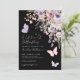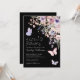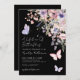 A Lifetime of Butterflies Bridal Shower Invitation. Celebrate the bride to be with this whimsical design featuring a black background on both the front and back for a bold, elegant contrast. The phrase “A Lifetime of Butterflies” appears at the top and can be customized or removed for a more minimal look.