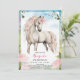 Invitación Caballo blanco bonito y flores rosas foto cumpleañ