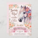 Invitación Caballo Blanco Chica floral de cumpleaños número 1