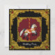 Rico dorado, rojo y negro diseño barroco regio con hermoso caballo de carrusel pintado a mano, plantilla de invitación para fiesta de cumpleaños infantil de cualquier número de años.