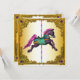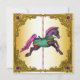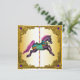 Hermoso caballo de carrusel pintado a mano dorado plantilla de invitación para fiesta de cumpleaños y evento. Personalice la parte delantera y trasera para su evento.