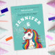 ¡Únete a nosotros para celebrar un mágico quinto cumpleaños! Nuestra vibrante invitación azul acuático presenta un adorable unicornio blanco con pelo de arco iris, alegremente representando en medio de falsas estrellas purpurinoso. Personalizar todos los detalles en negrita en blanco, incluyendo la fecha, hora, ubicación e información RSVP. Flotas brillantes alrededor del mar para añadir un toque de magia extra. Este encantador diseño de personalizable es perfecto para una memorable fiesta de cumpleaños con temática de unicornio. ¡Asegúrate de que tu pequeña celebración sea mágica y encantadora, y capte la atención de todos y cree recuerdos inolvidables!