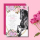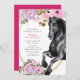 Invitación Caballo negro bonito con flores rosadas Cumpleaños