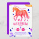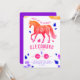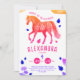 Prepárate para una aventura inolvidable en la celebración del cumpleaños del caballo! Las invitaciones incluyen un encantador diseño de acuarela rosa y naranja sobre un fondo blanco y limpio, con un toque lúdico y elegante al evento. El nombre de los niños se exhibe con un divertido y audaz tipo de letra rosada, mientras que los detalles del evento son fáciles de leer en la moderna tipografía morada. Diseñada para ser elegante y femenina, esta invitación es perfecta para las niñas. Decorado con coloridas hojas de acuarela en rosa y violeta, ofrece un ambiente caprichoso. Ensillar y galopar por encima, ya que esta invitación marca el tono para un día divertido y aventurero. Con texto de personalizable, es la manera perfecta de hacer su invitación única. No te pierdas, personaliza tu invitación y únete a la diversión.