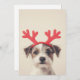 Adorable Terrier Jack Russell con cuernos de reno rojos festivos, trayendo alegría y encanto navideño. ¡Perfecto para difundir el espíritu de la Navidad y sonrisas!