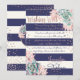 Flores modernas, chic y femeninas de cactus suculentas rosa y azul turquesa con lunares de rosa metalizado impresos y tipografía en patrón de rayas blancas marfil y azul marino, tarjetas de Pozo de los Deseos. Este diseño clásico y sofisticado es perfecto para la pareja que se casa, elegante, trendy y con estilo. Personalice con su propio mensaje en la parte delantera y un monograma personalizado en la parte posterior. Todo el diseño de impresión de fotos.