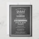 ¡Shhh! ¿Puedes guardar un secreto? Invitar a la familia y amigos a una celebración elegante y emocionante con esta invitación sorpresa de aniversario en negro y plata. El diseño presenta un diseño con un fondo de pizarra falso, rayas metálicas modernas / borde y una tipografía de estilo Art Déco de estilo vintage. Tenga en cuenta que la plata es color impreso y no Relieve metalizado metálico. Esta tarjeta está preparada para el 25º aniversario del boda, pero todo el texto es sencillo para el personalizar para cualquier año o ocasión.