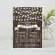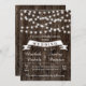 Luces elegantes de cuerda emparejadas con un cartel que sostiene la palabra "BODA" en madera adornan esta rústica invitación a la boda. Una elección ideal para su boda al aire libre en verano o otoño.