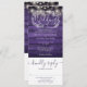 Invitación nupcial "todo en uno" con luces de cuerda de bonito y tipografía elegante sobre un fondo rústico de madera morada. La invitación incluye una tarjeta RSVP que se puede cortar y detalles de la información de los invitados. Diseñado por Thisisnotme©