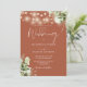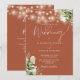 Esta elegante invitación a la boda de terracota, con luces de cuerdas de bonito y vegetación floral, puede ser personalizada con su información en tipografía de moda con los detalles de su sitio web boda y su código QR al revés. Diseñado por Thisisnotme©