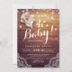 Plantillas de tarjetas de invitación Baby Shower - Elegante guión, floral vintage y hilo con decoración de encaje sobre fondo rústico de madera. ¡Todo el estilo de texto, colores, tamaños se pueden modificar para adaptarlo a sus necesidades!