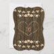 Una coraza floral rústica de luces dulce dieciséis invitaciones en tonos rubor, coral, verde, marrón, blanco, amarillo y marrón con un hermoso fondo de madera que recuerda a una cerca o a un barril de madera. Una corona de laurel otoñal compuesta de bellotas, bayas, girasoles, rosa de tulipanes y flores blancas se sienta en una rama arbolada. La parte posterior de la invitación se puede personalizar con la edad del chica de cumpleaños dentro del árbol tallado se ve el diseño del corazón. Perfecto para una caída al aire libre, noche, campo, casa de campo, jardín o moda rural dulce 16. Las bonitas luces de mimbre y de hadas con un efecto bokeh son luminosas, cálidas y acogedoras. Pintura © Chrissy H. Studios, LLC. Todos Los Derechos Reservados.
