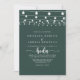 Esta rústica hilo luce la invitación a la boda española verde es perfecta para un boda clásico. El diseño presenta bonitas luces de cuerda pintadas a mano en un fondo verde.