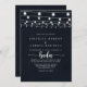 Esta rústica cuerda ilumina la invitación a la boda española, perfecta para un boda moderno. El diseño está decorado con bonitas luces de cuerda pintadas a mano.