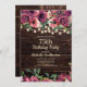 Invitación a la fiesta de cumpleaños número 75 con fondo rústico de madera de grano marrón oscuro y luces de cuerda relucientes con flores de color rosa y púrpura. Contáctenos para obtener ayuda sobre la personalización o la correspondencia de productos.