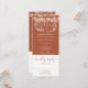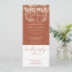 Invitación nupcial "todo en uno" con luces de cuerdas de bonito y tipografía elegante en un fondo de terracota. La invitación incluye una tarjeta RSVP que se puede cortar y detalles de la información de los invitados. Diseñado por Thisisnotme©
