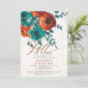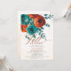 Este Naranja Boda floral botánico de otoño de amor Verde azulado o Bridal Shower Invitation captura la esencia del otoño con un boho borde floral botánico con rosas acuarelas y follaje boda en los ricos y cálidos tonos de naranja verde azulado y quemado de terracota, así como el título "Caer en amor" en la caligrafía moderna. El diseño es acogedor y se complementa con una textura de acuarela pálida que evoca el aire fresco y los tonos dorados del otoño. Ideal para una novia que planea una ducha rústica de matrimonio en el jardín o una celebración íntima en el patio trasero, esta invitación refleja perfectamente el ambiente acogedor y romántico de la temporada de otoño, mezclando el arte romántico con la elegante sencillez de cualquier lugar.
