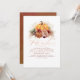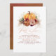 La invitación a la boda tiene una calabaza acuarela adornada con terracota, rojo borgoña, flores rojas y pampas.