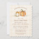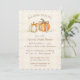 Celebra la futura novia con esta encantadora invitación a la ducha de novia. Con dos calabazas bellamente ilustradas atadas con arcos, los colores suaves y neutros capturan la acogedora esencia del otoño. Los elegantes bordes de vieiras y el caprichoso texto "Falling in Love" le dan un toque perfecto de romance estacional. Ya sea que esté planeando una reunión rústica o una celebración íntima, esta invitación está diseñada para complementar su tema de otoño o boda rural. Personalizable con todos los detalles del evento, es la manera perfecta de invitar a los huéspedes a duchar a la novia con amor y buenos deseos.