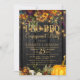 Hermoso naranja oxidado y oscuro otoño borgoñoso, flores y bordes de calabaza con cuerdas de luces de centelleo doradas sobre un fondo de madera oscura de granero, haciendo una encantadora y elegante invitación a la fiesta de compromiso con un moderno guión de escritura de tipografía de oro. ++++++++ Fácil de personalizar con tus detalles! Adecuado para la tradicional otoño rústica | país | granja | compromiso al aire libre en el patio trasero u otro antes de las fiestas de boda / barbacoas.