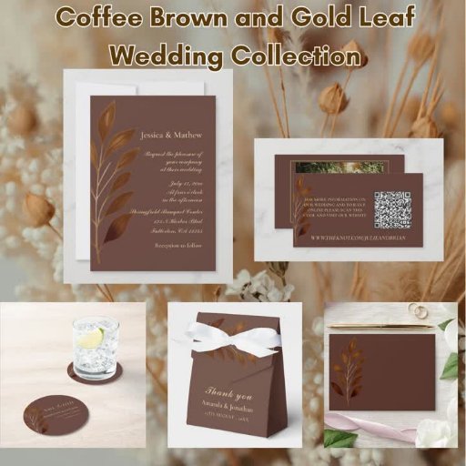 Coffee Brown and Gold Leaf Wedding CollectionDiseñado por Reviva Sisters