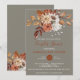 Elegante terracota floral de color caoba sobre parejas grises ducha invitaciones de colores otoñales. nombres, fechas e información de personalizares.