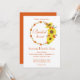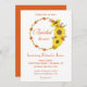 Esta bonita ducha de novia invita al otoño y presenta un diseño de fondo blanco con una hermosa corona de girasol. El texto y la parte posterior de la invitación es un tipo de letra naranja complementario. ¡Genial para las bodas de otoño, pide la tuya hoy! Diseño de invitaciones: Bodas de arte Floral de Rhoadie: AMBilustraciones http://www.etsy.com/shop/AMBillustrations/