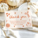 Diga gracias de la manera más dulce con esta fantástica tarjeta Baby Shower de agradecimiento a un pequeño y cortijo! 🎃 🧺 con un suave gingham naranja, juguetones garrapatas a mano (calabazas, arcos, corazones y acentos de caída), esta encantadora carta es la manera perfecta de mostrar gratitud a sus invitados. Personalice el texto para incluir su nombre o mensaje, y envíe una sincera nota de agradecimiento por celebrar su calabaza en el camino. 🍼 ✨ Tanto si se combina con la colección completa de A Little Cutie Pie como si se envía por su cuenta, este diseño añade encanto rústico a una casa de campo y acogedoras vibraciones de otoño a su escritorio de ducha para bebés. Un conservador atento y una manera elegante de hacer saber a la familia y amigos lo mucho que significa para ti su amor y sus regalos. 💌