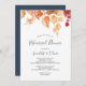 Este otoño deja blanco con las direcciones la invitación al ensayo de la cena es perfecta para un ensayo boda de octubre. El diseño rústico presenta unas impresionantes hojas de otoño de acuarela pintadas a mano en las sombras de puesta de sol de amarillo, naranja quemado y rojo burdeos. Añadir direcciones de conducción, o más información al fondo de la invitación.