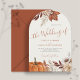 Flores botánicas, calabaza, follaje y hojas secas de acuarela rústica moderna, haciendo que la moda de otoño sea asequible, todo ello en una sola invitación a la boda blanca con un moderno guión de caligrafía de escritura a mano y una sabrosa paleta de color beige de terracota. +++++++++++++++ Personalízalo con tu foto y código QR en tu sitio web o en RSVP en línea.