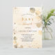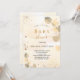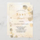 Para un Baby Shower elegante. Un fondo dorado de color agua adornado con eucaliptos dorados y polvo falso purpurina de oro. Personalice y el nombre de la madre que será y los detalles del fiesta. Letras de color negro y dorado. Fondo de color dorado.