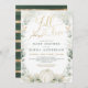 Esta elegante invitación a la ducha de bebé con temática de calabaza cuenta con hermosas hojas de color agua verde y dorado y una tipografía elegante que combina texto moderno y limpio con un toque de caligrafía