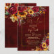 Caída en el amor rosas de Borgoña girasoles amarillos follaje otoño fondo borgoña marco dorado floral ducha de novia invitación plantilla descarga instantánea