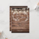 Invitación rústica a la boda, con luces de cuerda de bonito y un delicado jardín floral rústico de hoja botánica, de estilo rústico, con una tipografía de escritura elegante, sobre un fondo rústico de madera. Personaliza tu información especial sobre el día de tu boda. Diseñado por Thisisnotme©