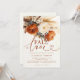 ¡Enamorado! Una romántica, elegante, sencilla, elegante y moderna ducha de novia para los meses de otoño, octubre, noviembre. Presenta una caligrafía de escritura moderna y elegante con el título "enamorarse" y un ramo otoño de terracota y colores crema, así como pasto pampas y flores de relleno. Lujoso pero sencillo, clásico pero moda, moderno pero atemporal. Una buena elección para una ducha de novia en otoño o otoño con cobre, naranja quemado, terracota, beige, rojo, naranja y otros tonos otoño.
