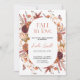 Moderno estilo bohemio presupuesto invitación a la ducha de novia con flores acuáticas y hojas de otoño en tonos tierra como el marrón rojizo, naranja quemado y terracota. La elección perfecta para los bodas de otoño.