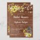 Estas invitaciones rústicas a la ducha de novias incluyen girasoles, farolillos, hojas caídas y luces de cuerda sobre un fondo de madera. Personalízalos con tu texto. También hay productos fiestas que coinciden.