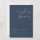 Esta invitación a la ducha de parejas presenta un estilo de letra manuscrito oscuro con un diseño minimalista moderno con una combinación moderna de color azul marino y oro. Edite todos los colores y *la mayoría* de la redacción para satisfacer sus necesidades. La invitación a las parejas es perfecta para las parejas contemporáneas, modernas o minimalistas.