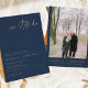 Esta invitación de renovación de votos presenta una tipografía manuscrita con estilo y un diseño minimalista moderno con una combinación de colores azul marino y dorado modernos. Agrega una foto en la parte posterior para un toque personal.