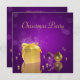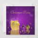 Glamoroso ilustracion de Navidades mágicos: Encantadora caja de regalo dorada al lado del oro y bolas de árbol de navidad morado y perlas doradas en un elegante fondo morado.