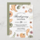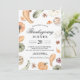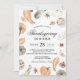 Celebra la temporada con estilo con esta elegante invitación para la cena de Acción de Gracias con acuarela. Con calabazas pintadas a mano, zapallo, anís estrellado y hojas de otoño en tonos cálidos y terrosos, este diseño establece el ambiente perfecto para tu reunión. El diseño rústico pero refinado funciona perfectamente para cenas formales, reuniones familiares informales, fiestas de Friendsgiving y celebraciones de cosecha.