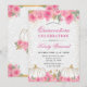 Flores rosa acuarela y calabaza con diseño de marco de Relieve metalizado dorado y fondo de patrón blanco floral